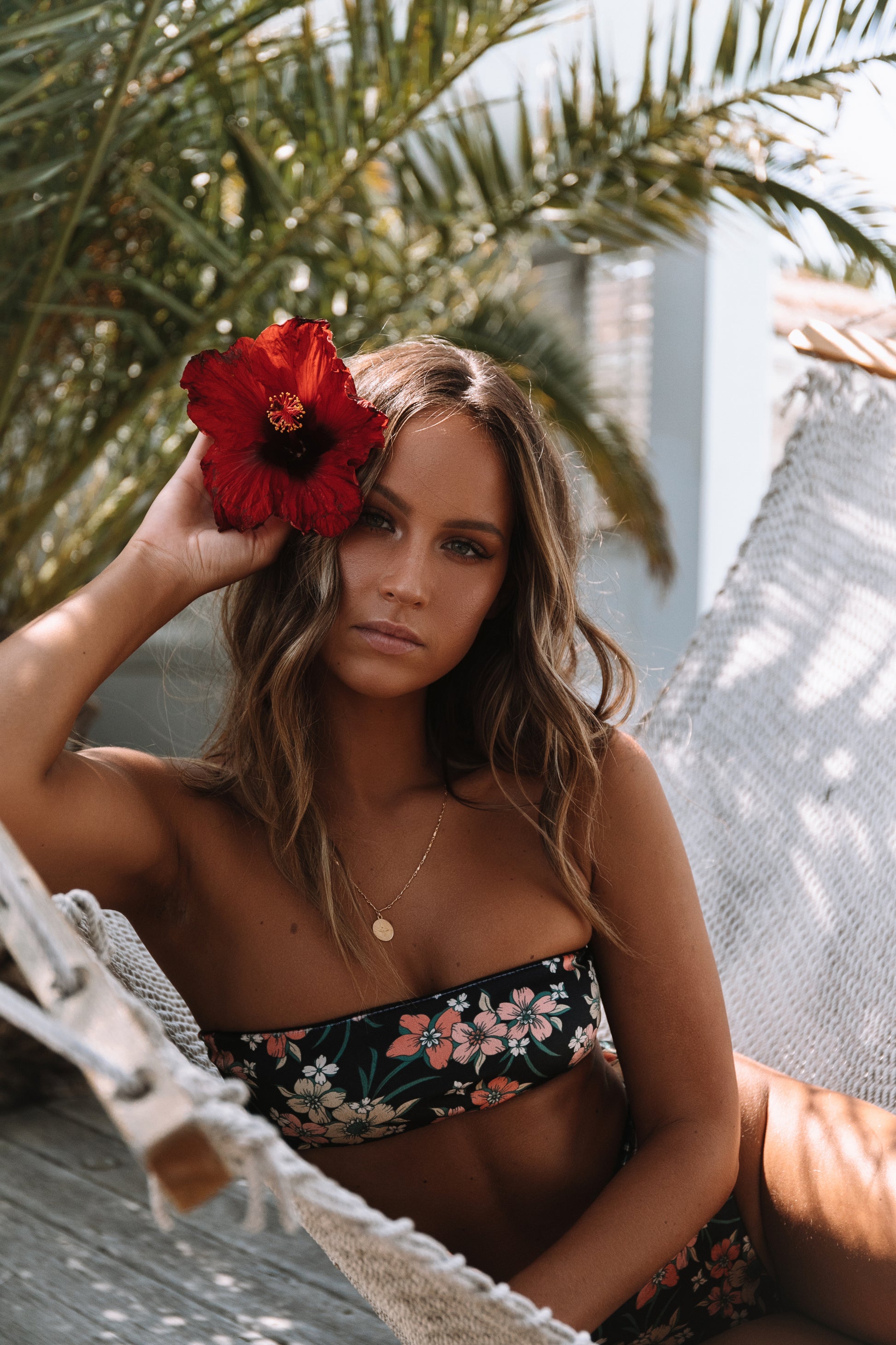 Palm Cove Bandeau Top - Black/Floral Reversible